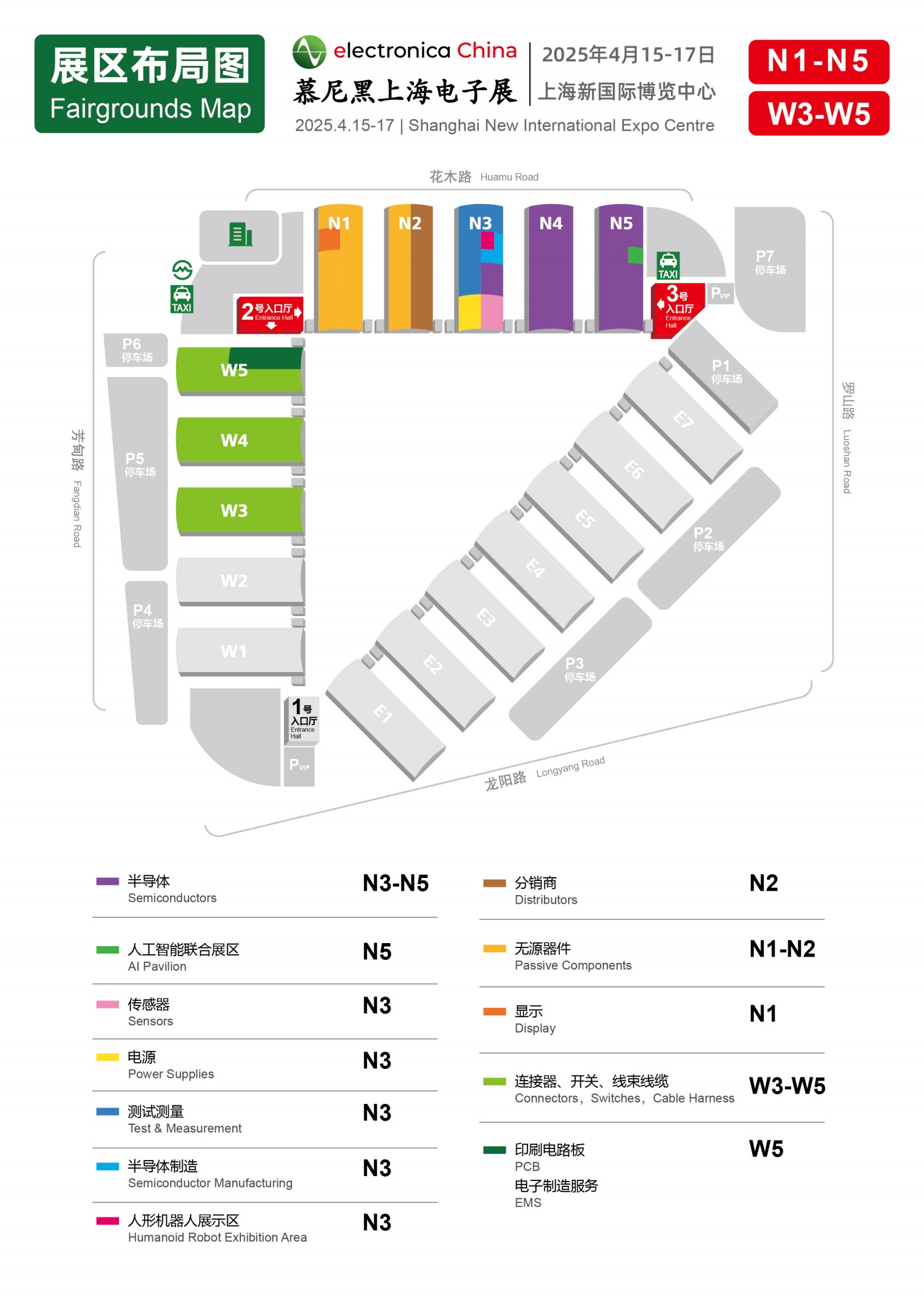 2026 慕尼黑上海电子展(electronica China )现场设立集成电路、功率半导体、传感器、电源、电子测试测量、无源器件、显示、连接器、开关、线束线缆、印刷电路板、电子制造服务、半导体制造与检测、元器件制造,人工智能与人形机器人等细分展区。点击了解更多展商详情。